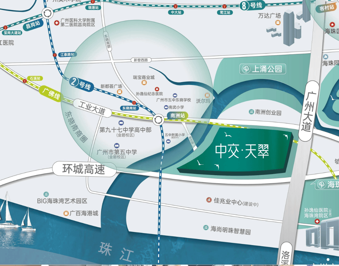 中交天翠所正在的海珠区南部板